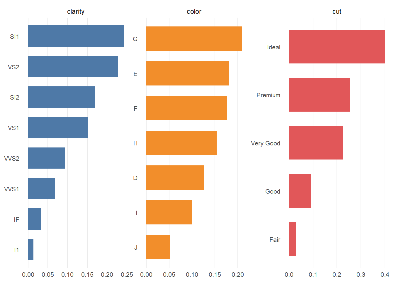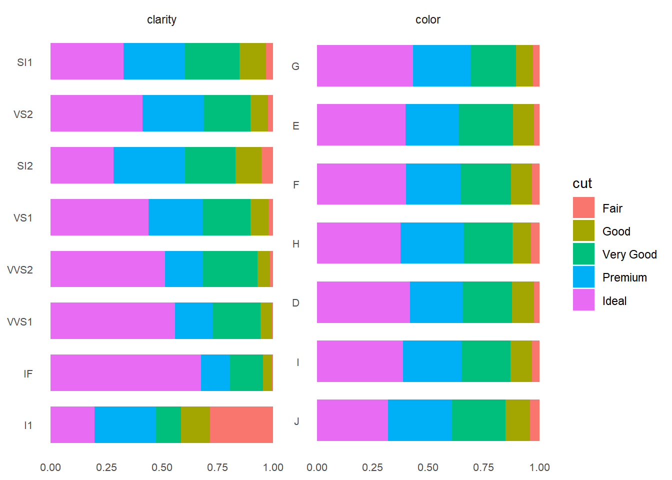 plotBar(ggplot2::diamonds, pct = TRUE)